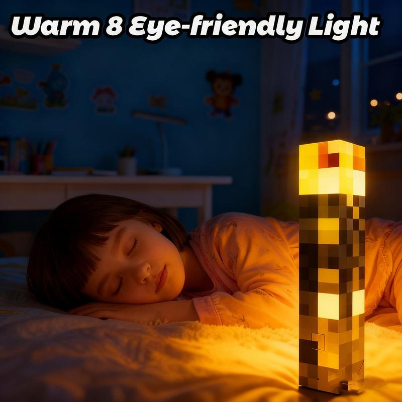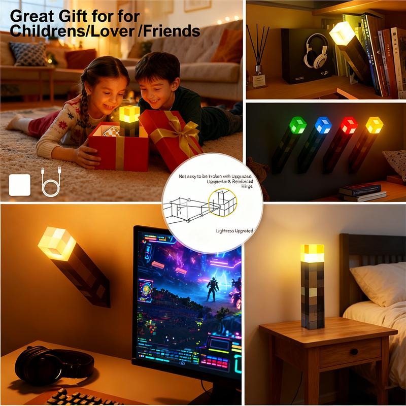 Designed with retro pixel-style elements, this torch-shaped light creates a flame-like visual effect. It adds character and nostalgic charm to bedrooms, game rooms, desks, and themed spaces.