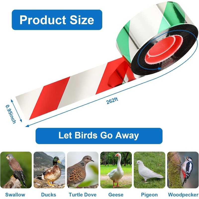 Perfect for use in backyards, fruit trees, vegetable gardens, pools, golf courses, farms, campsites, or roof edges. Simply hang, twist, or tie the tape on any surface where birds are a concern.