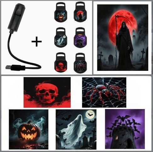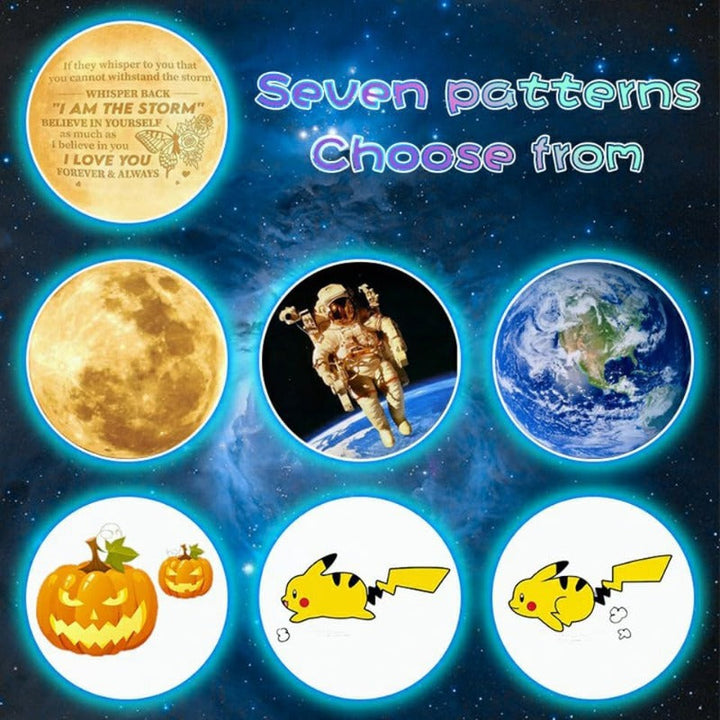Customize your projection with 10 unique film lenses featuring the moon, planets, astronauts, Earth, Halloween elements, and more. Easily swap designs to suit the scene.