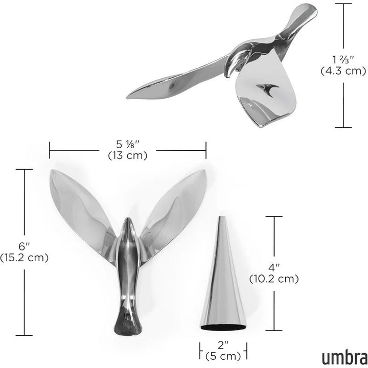 With a wingspan of 6" (15.2 cm) and a sleek 4" (10.2 cm) tall stand, this bar accessory fits beautifully into any space.